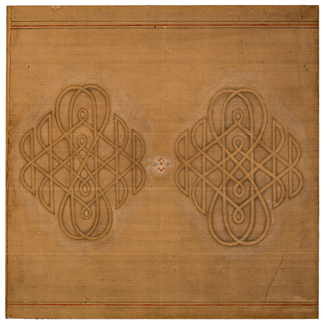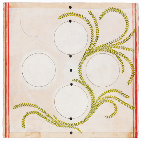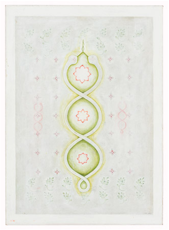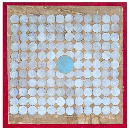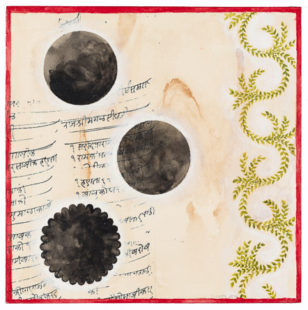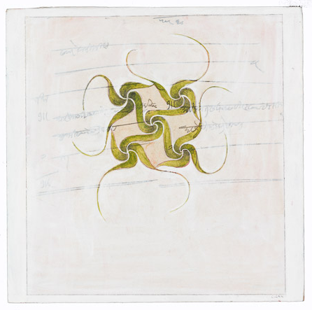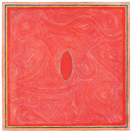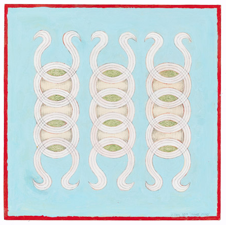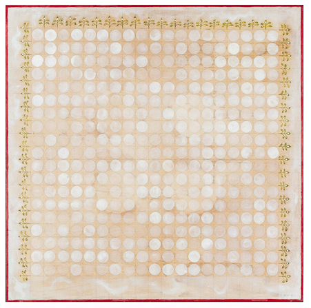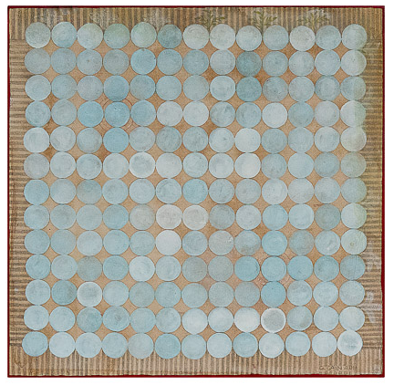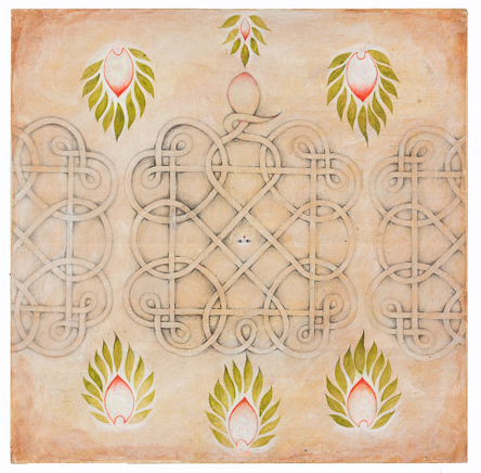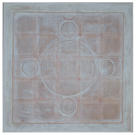 Dreamer [Kolam] Gouache and graphite on digital print lamainated to baltic birch (with riser), 40"c x 40"c, 2003, signed on back, Charlotte Cain
