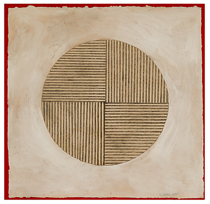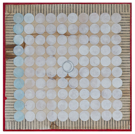 Kolam Version 2, 3,, Gouache, graphite and walnut stain on paper laminated to Baltic birch, 11.9" x 11." x .25" on .65 recessed riser, 2003, signed C. Cain