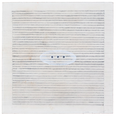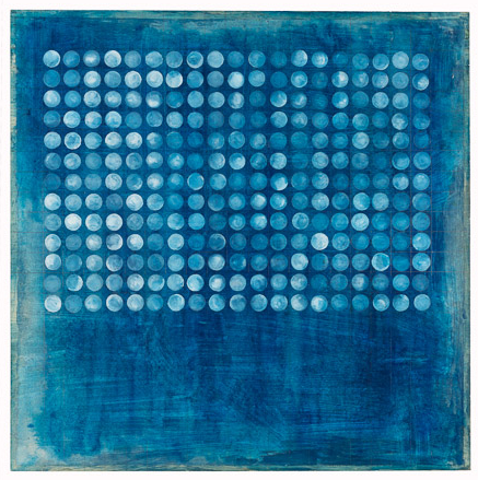 One Step at a Time 104, Blue Moon Field, Gouache and graphite on paper on Luan plyboard, 24 x 24, 2011, Charlotte Cain