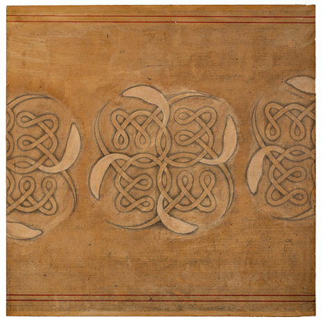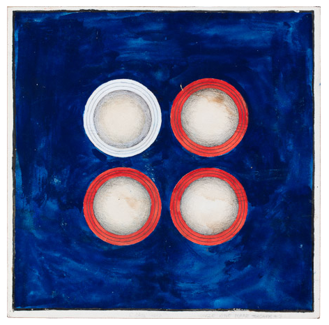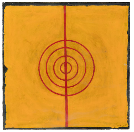 Untitled [Kolam, eyes] Gouache and graphite on digital print lamainated to baltic birch, 40"c x 40"c, 2003, signed on back, Charlotte Cain