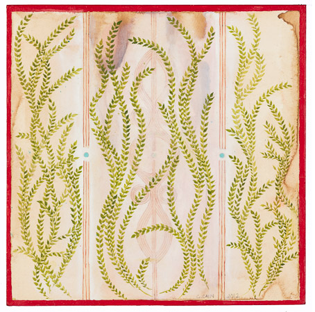 Plant Teacher, Jungle Vine #2, Gouache and graphite on paper laminated to board with recessed riser, 12" x 12," 2011, signed C. Cain