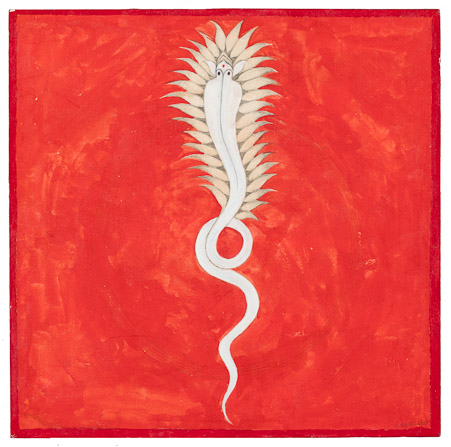 Shiva's Mood, Gouache on paper laminated with Rhoplex to Baltic birch, 24" x 24," 2005, signed C. Cain